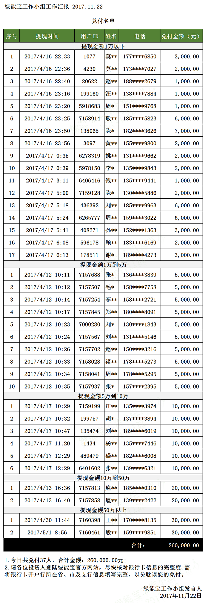 兌付名單(2017年11月22日)