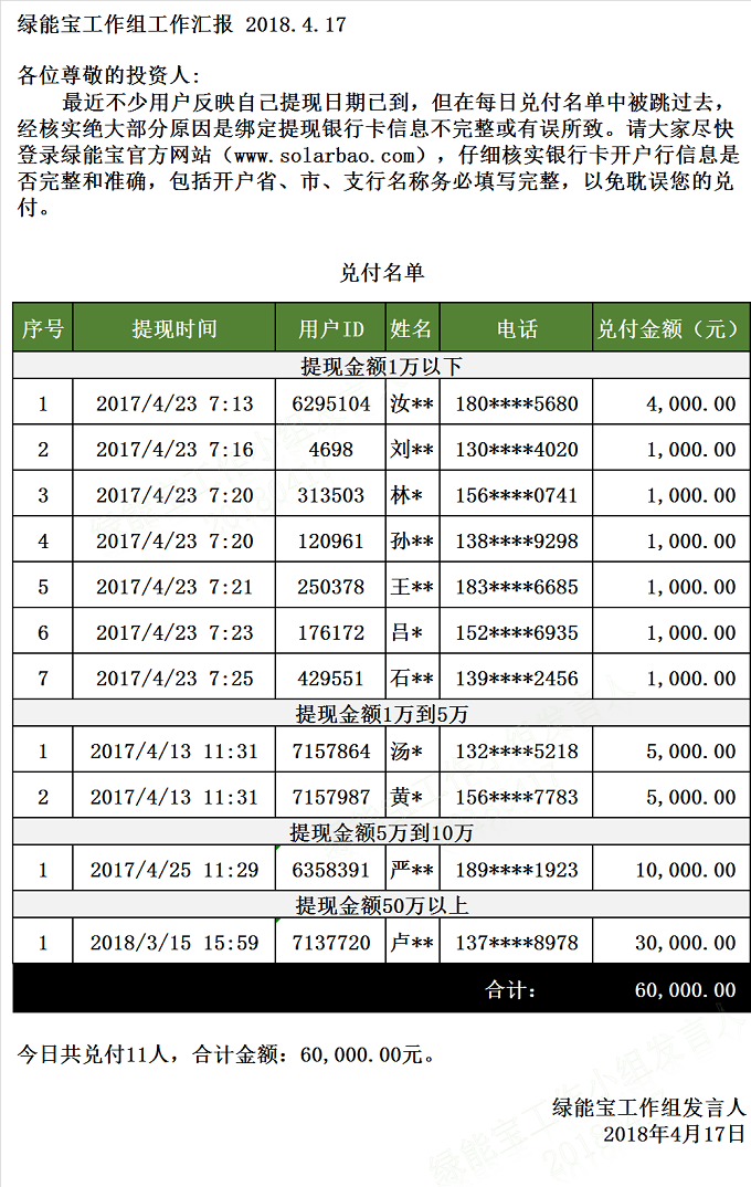 兌付名單(2018年4月17日)