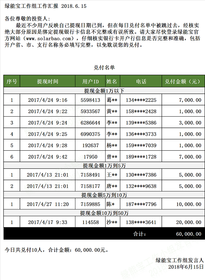 兌付名單(2018年6月15日)