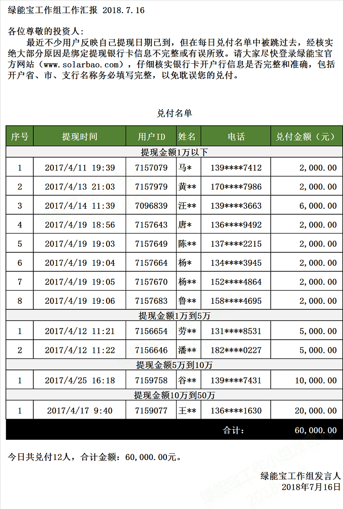 【下一條】兌付名單(2018年7月13日)