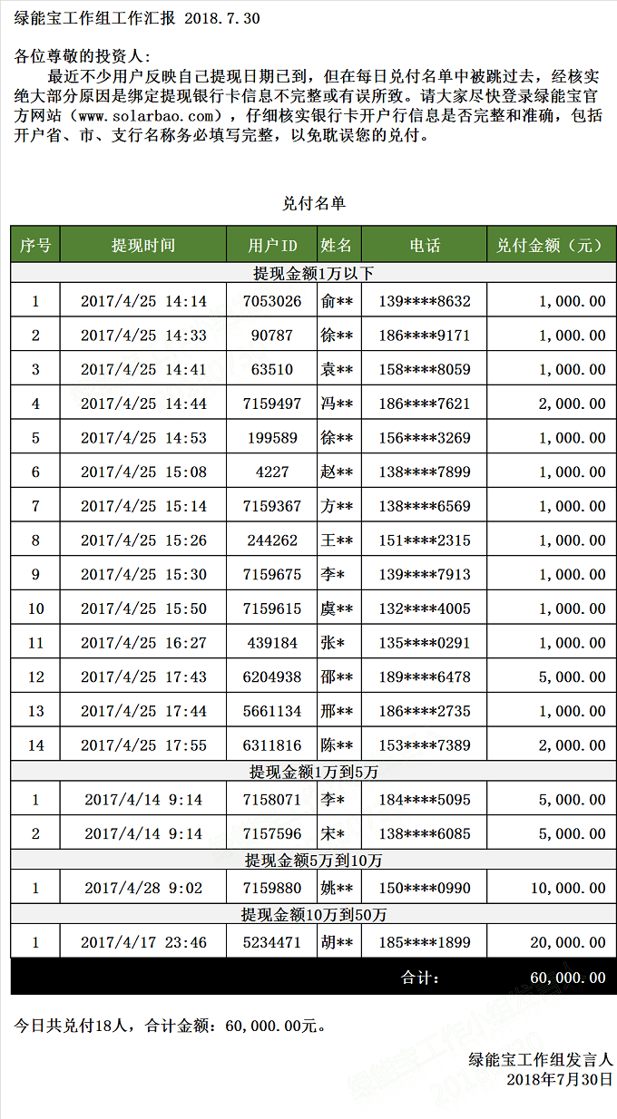 【下一條】 兌付名單(2018年7月27日)