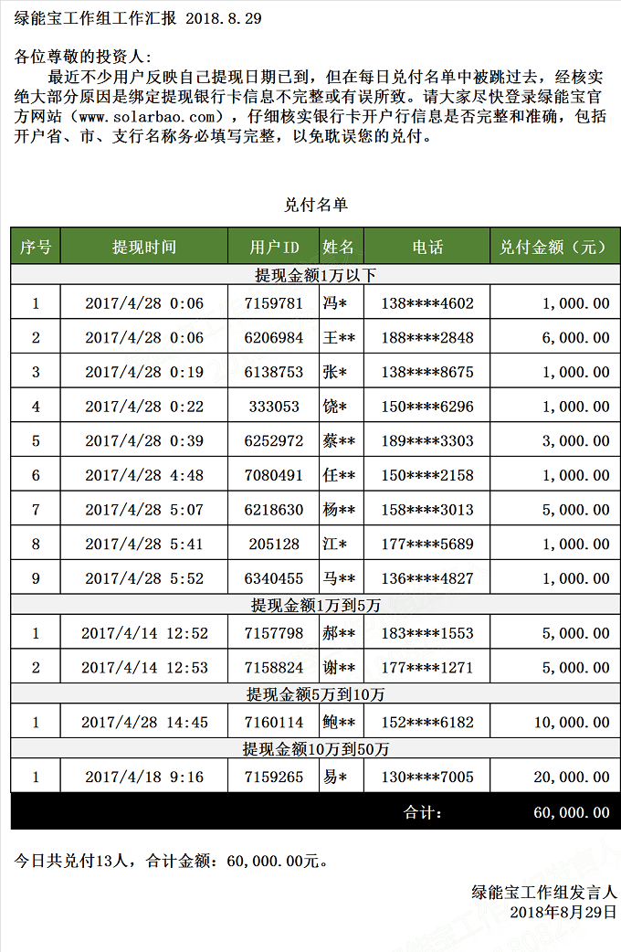 兌付名單(2018年8月29日)