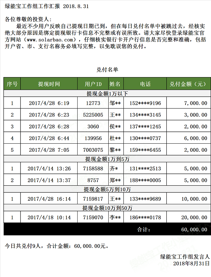 【下一條】兌付名單(2018年8月30日)