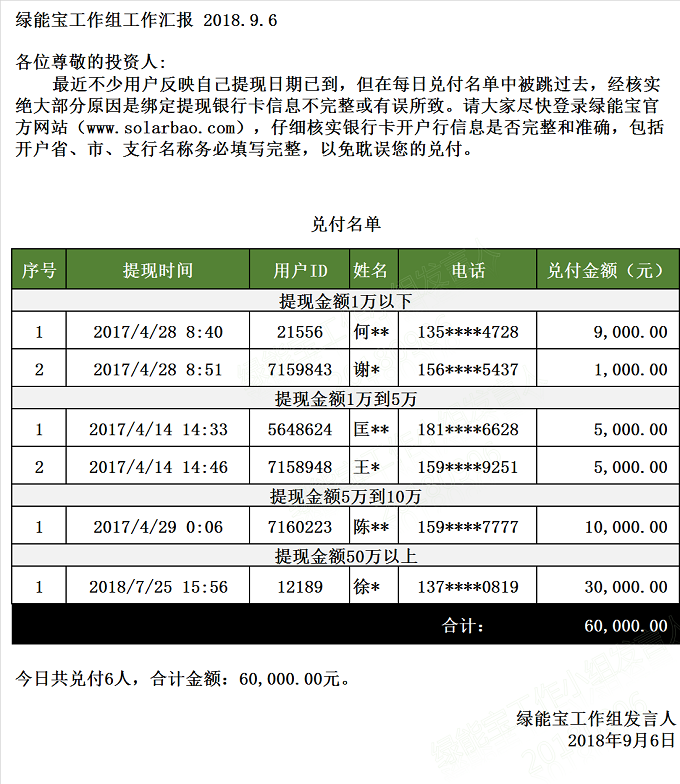 兌付名單(2018年9月6日)
