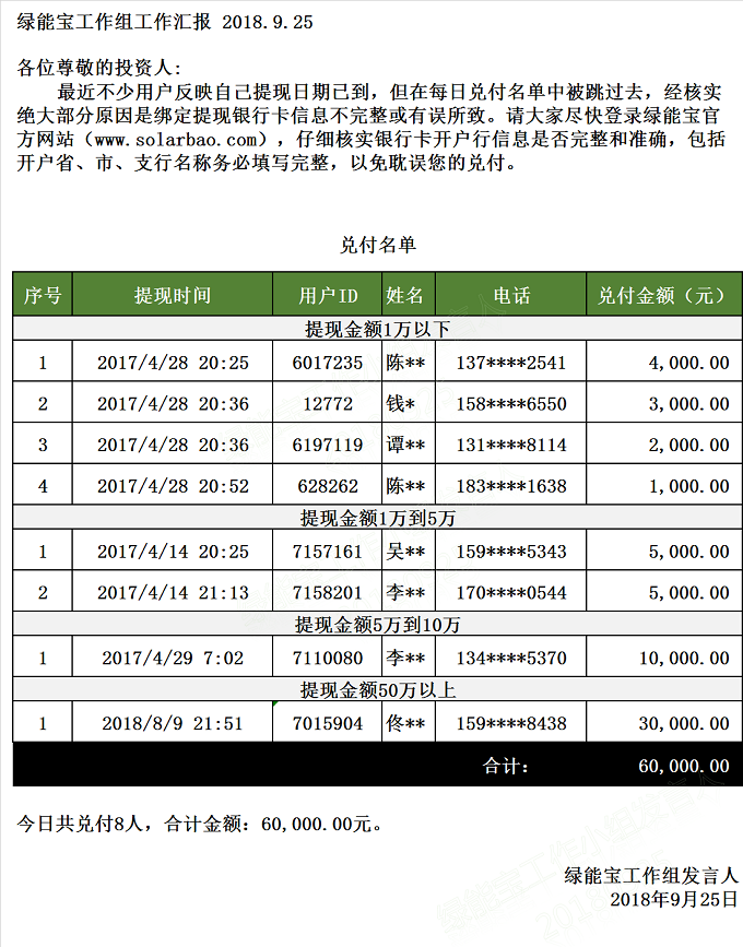 兌付名單(2018年9月25日)