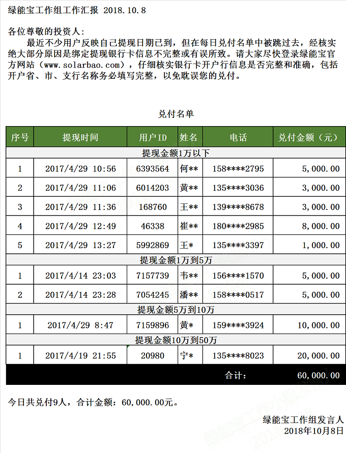 兌付名單(2018年10月8日)