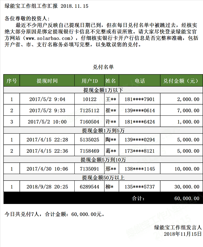 兌付名單(2018年11月15日)