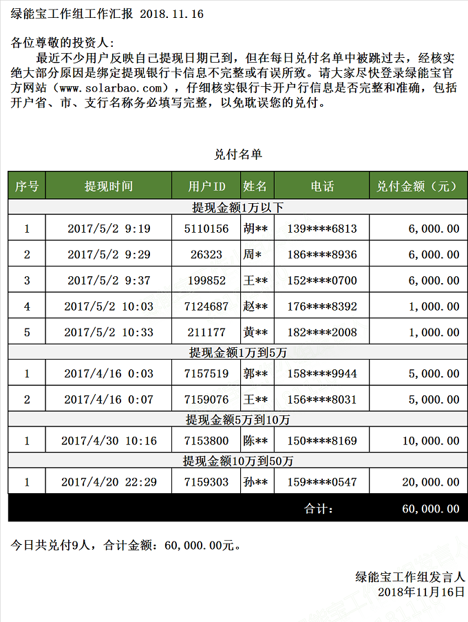 兌付名單(2018年11月16日)