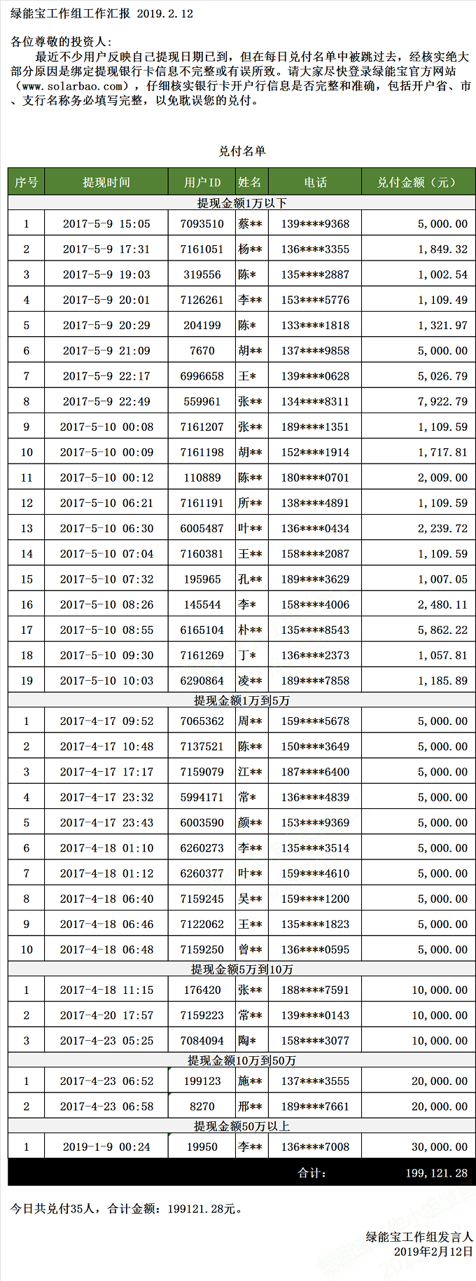 兌付名單(2019年2月12日)