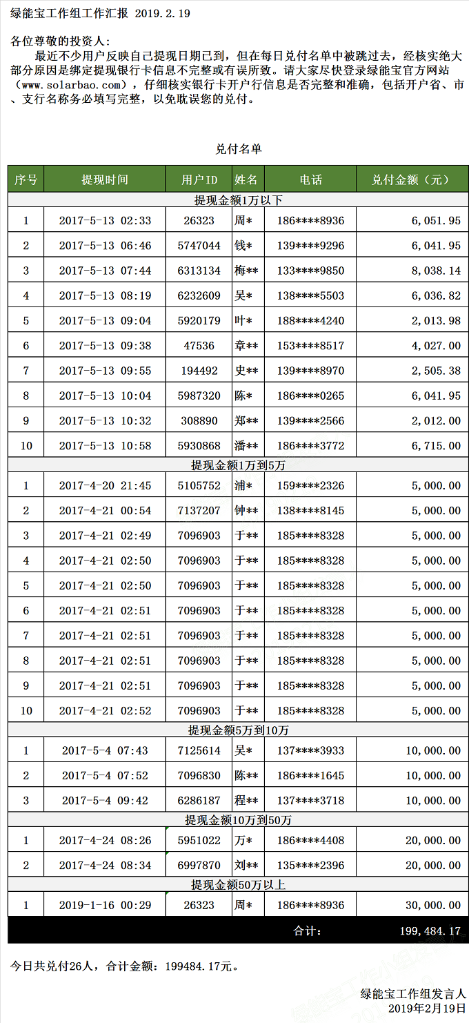 兌付名單(2019年2月19日)